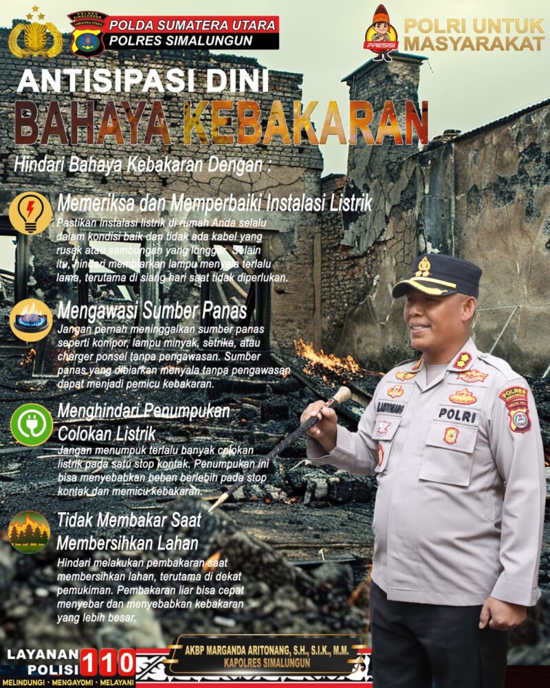 SIMALUNGUN – Api tidak mengenal kompromi. Dalam hitungan menit, rumah yang menjadi tempat berlindung keluarga bisa lenyap dilahap si jago merah. Kapolres Simalungun mengeluarkan himbauan penting agar masyarakat melakukan antisipasi dini untuk mencegah tragedi kebakaran yang bisa terjadi kapan saja.