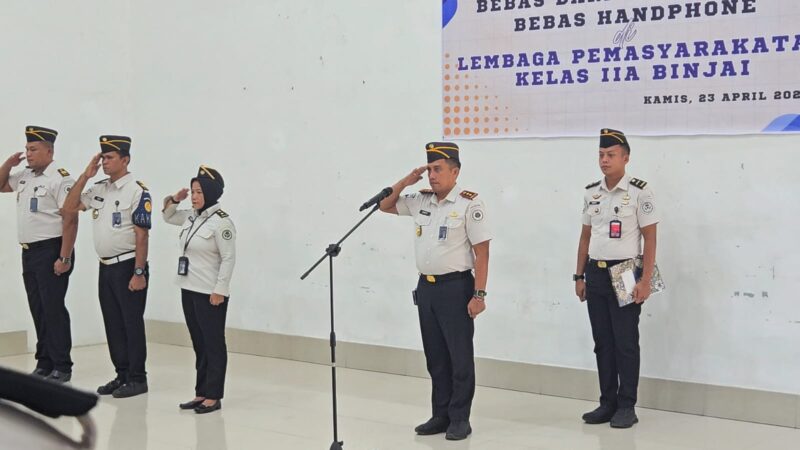 BINJAI — Lembaga Pemasyarakatan (Lapas) Kelas IIA Binjai menegaskan komitmennya dalam menciptakan lingkungan pemasyarakatan yang aman, tertib, dan berintegritas melalui pelaksanaan Ikrar Bersama Bebas Narkoba dan Handphone ilegal, Kamis (23/04/2026).