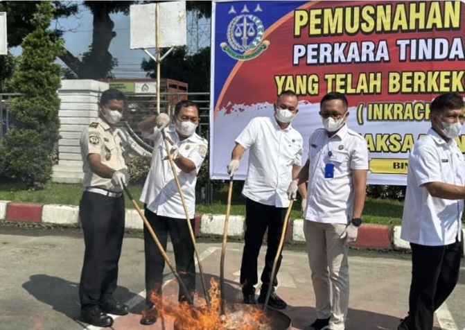 BINJAI — Lembaga Pemasyarakatan (Lapas) Kelas IIA Binjai menunjukkan komitmennya dalam mendukung penegakan hukum dengan menghadiri kegiatan pemusnahan barang bukti perkara tindak pidana umum yang telah berkekuatan hukum tetap (inkracht), yang digelar oleh Kejaksaan Negeri Binjai, Rabu (22/04/2026), di Kantor Kejari Binjai.