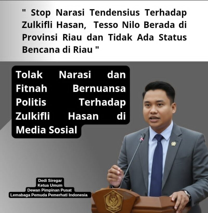 Jakarta,11 Desember 2025-Ketua Umum Dewan Pimpinan Pusat Lembaga Pemuda Pemerhati Indonesia ( DPP LPPI ) Dedi Siregar menyesalkan maraknya narasi dan tuduhan tidak berdasar yang menyerang Menteri Koordinator Bidang Pangan RI, Zulkifli Hasan, di berbagai platform media sosial.